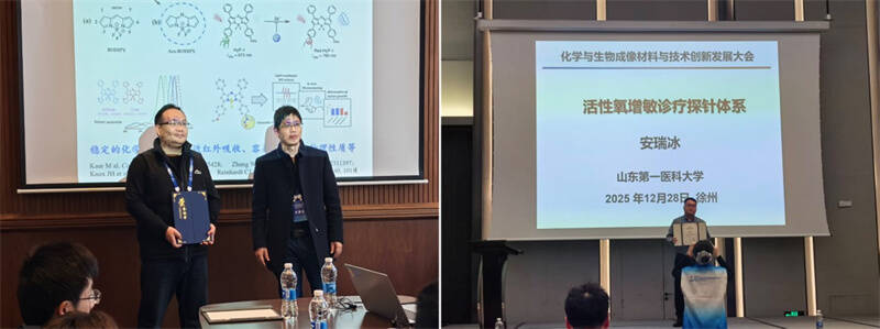 作为联合主办单位,我院高度重视此次学术盛会,由副院长董建教授带队,组建十人核心团队深度参与大会各项议程,充分借助大会平台开展学术交流、成果展示与合作对接。校(院)多位青年科研骨干在分论坛中精彩亮相,尽显创新活力与科研实力:徐云剑博士作题为“高性能光疗试剂的构建”的专题报告,系统分享了团队在光动力治疗前沿方向的新材料设计思路、技术突破与应用前景;安瑞冰博士汇报“活性氧增敏诊疗探针体系”研究进展,深入阐述了该体系在提升诊疗一体化精准性与效率方面的核心优势及临床转化价值。两位博士的报告聚焦临床需求、直击技术痛点,既展现了青年科研人员面向人民生命健康、攻克临床难题的责任担当,获得与会专家广泛关注与高度认可。