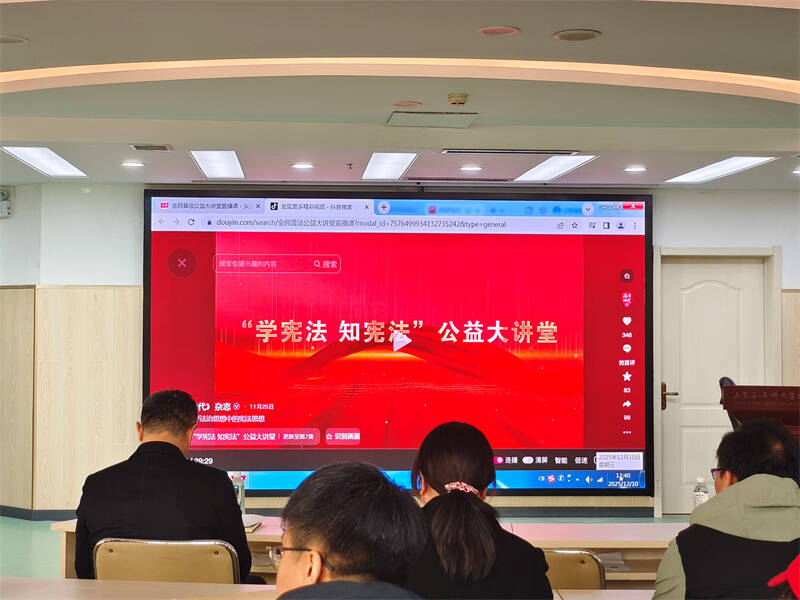 本次活动依托公益大讲堂,通过政策宣讲、案例剖析、互动答疑等多个环节,生动解读了全民普法的重要意义与推进路径。赵传华讲到,宪法作为国家的根本法,是治国安邦的总章程,是党和人民意志的集中体现,具有最高的法律地位、法律权威和法律效力。2025年12月1日至7日是第八个“宪法宣传周”,主题为“学习宣传贯彻习近平法治思想 推动宪法深入人心”。这一主题深刻体现了新时代法治建设的根本遵循,也彰显了让宪法精神扎根社会、深入人心的坚定决心。赵传华说到,全体教职工应深刻领会宪法精神,积极推动宪法实施,让宪法真正成为全体人民的共同信仰,为全面建设社会主义现代化国家、实现中华民族伟大复兴筑牢坚实的法治根基。