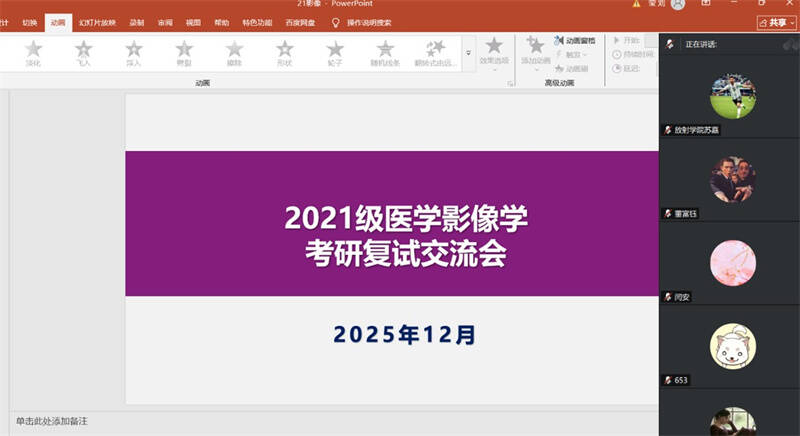 为帮助2021级医学影像学专业学子掌握复试技巧,增强备考信心, 12月26日晚7点半,放射学院在线上举办了医学影像学考研复试交流会。活动邀请了考入首都医科大学和复旦大学的2020级优秀学生代表公续婷、张子涵进行经验传授。