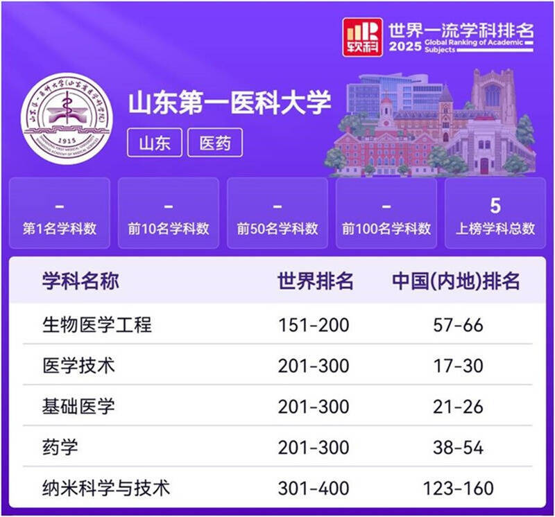 软科(ShanghaiRanking)发布2025年世界一流学科排名,校(院)5个学科上榜全球榜单。其中,由放射学院牵头建设的医学技术和生物医学工程两大学科持续上榜,生物医学工程学科更跃升至全球第184位,首度跻身前200强,充分彰显了校(院)医工交叉的硬核实力。同期,科睿唯安ESI最新数据显示,校(院) “工程学”学科也首次进入ESI全球排名前1%。两大榜单的突破,是校(院)深耕高水平学科建设、深化科教融合改革的重要成果。