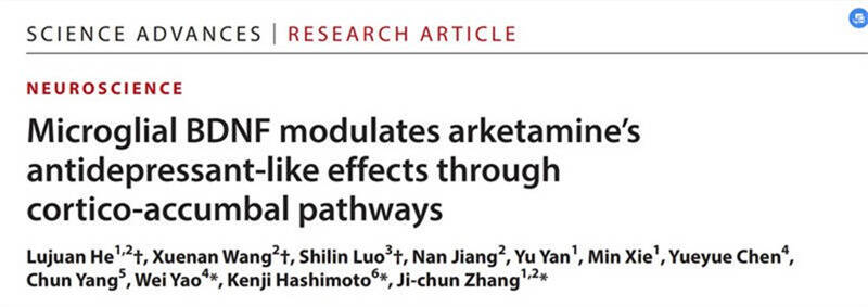 学院青年教师王雪楠博士以共同第一作者身份在Science子刊《Science Advances》上发表了题为“Microglial BDNF modulates arketamine's antidepressant-like effects through cortico-accumbal pathways(小胶质细胞BDNF通过调控NAc-mPFC神经通路介导R-氯胺酮抗抑郁作用的研究)”的研究论文。