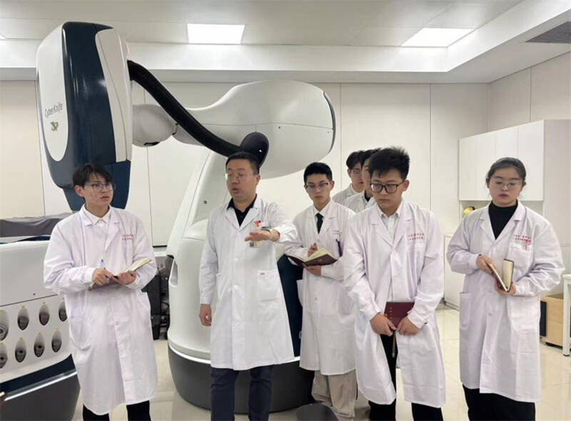 在10天的密集见习中,学员们先后深入核医学科、放疗科、放射科及介入诊疗等相关科室,在带教老师的指导下,近距离接触PET-CT、SPECT、DR、MR、赛博刀、直线加速器、光子CT等先进设备,观摩并学习影像获取、阅片分析、病例讨论与质控流程,全面了解影像技术在临床诊断与治疗中的实际应用,提升了专业认知与实践能力。