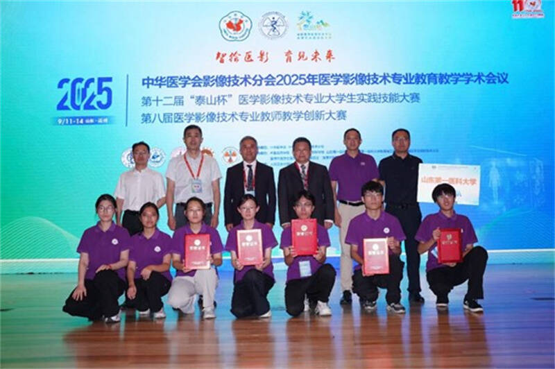 广大学子在学习中练就过硬本领,在实践中展现强劲竞争力:学术创新上,2019级本科生王淇发表2篇高水平SCI论文,并考入北京协和医学院,2021级本科生钟天正以第一作者在核医学顶刊《欧洲核医学与分子影像杂志》发表成果;学科竞赛上,连续在“泰山杯”全国医学影像技术大赛中斩获单项及团体奖项,2022级医学影像技术专业本科生孙誉宁,斩获今年“泰山杯”医学影像诊断单项桂冠,更带领团队勇夺“团体一等奖”,实现个人与团队双冠佳绩; 创新创业上,2022级本科生陈思贤牵头项目获2024年中国国际大学生创新大赛山东赛区金奖、2025年“挑战杯”省赛一等奖,实现历史突破。