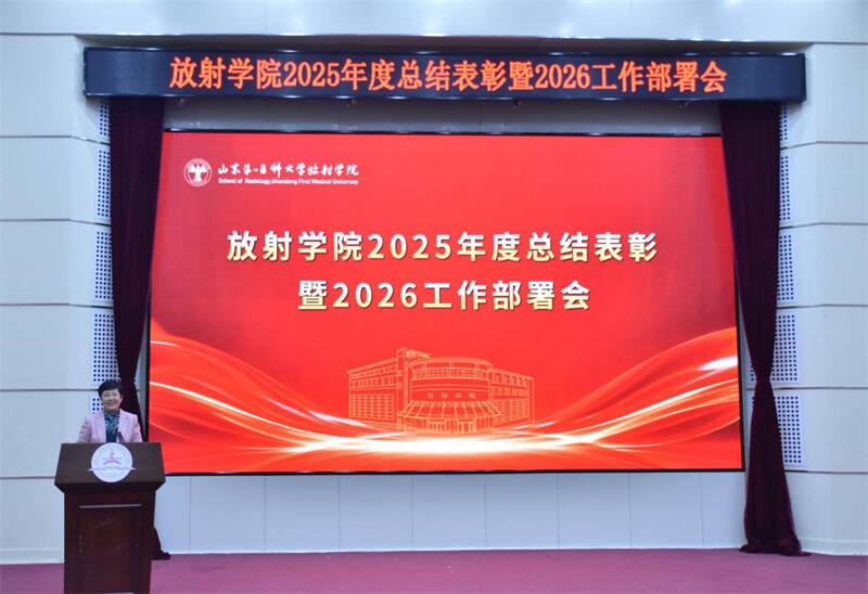 3月11日,泰山图书馆报告厅内,春意盎然,气氛热烈,放射学院 2025 年度总结表彰暨 2026 年工作部署会在此隆重召开。会议全面回顾过去一年各项工作成效,系统部署新一年重点任务,进一步统一思想、凝聚共识、激发干劲,奋力推动学院事业高质量发展再上新台阶。学院党委书记许锐、副院长董建出席会议,党委副书记赵传华主持,全体教职工参会。