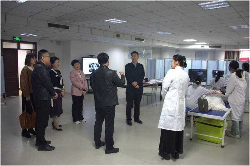刘思金一行还参观了超声实验室,观看了教师教学创新大赛预演,了解了“泰山杯”医学影像技术专业大学生技能大赛筹备和医教研协同推进、实习就业双选会等有关情况。