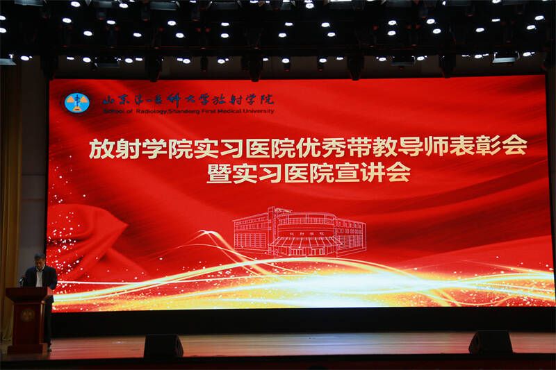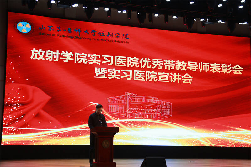 为表彰在实习带教工作中育人成效突出的优秀带教导师,持续提升医学人才培养质量,精准助力学生高质量就业,4月17日下午,放射学院在大学生活动中心隆重举办优秀带教导师表彰大会。会议由学院副院长董建主持,学院党委书记许锐、副书记赵传华,来自全国 50余家医院的科室主任及带教导师代表,放射学院 2023级、2024级全体学生共同参会。