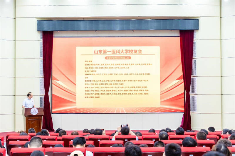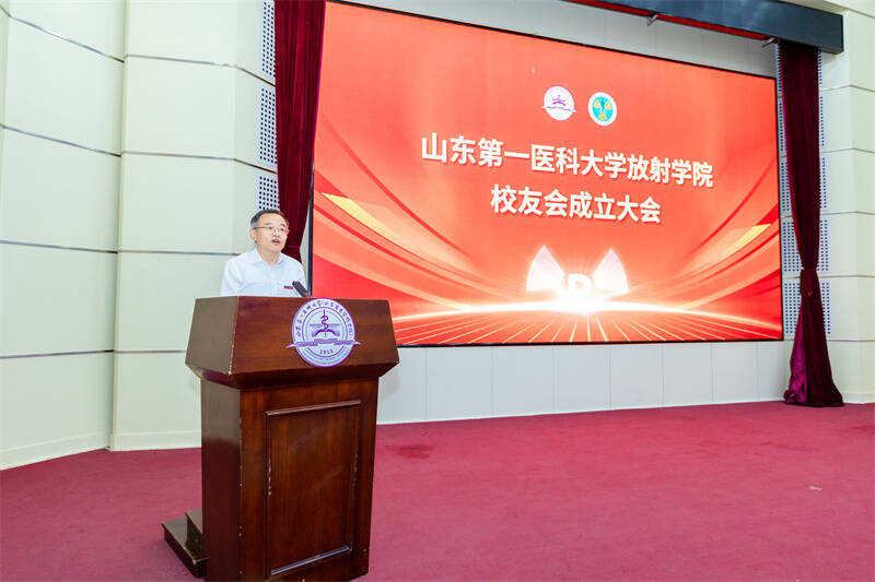 王宇轩在致辞中对放射学院校友会的成立表示热烈祝贺。他指出,校友是学校宝贵的资源和力量,校友会的成立是学校校友工作的重要拓展。他希望校友会能够成为广大校友联络情感、共谋发展的重要平台,凝聚校友力量,促进资源共享,为山东第一医科大学的学科建设、人才培养和整体发展注入新动能,共同谱写校友与母校携手前进的新篇章。