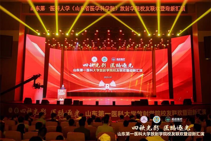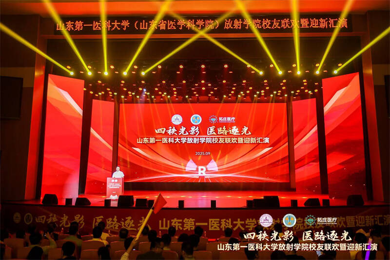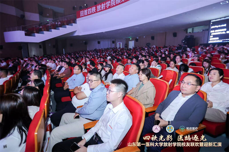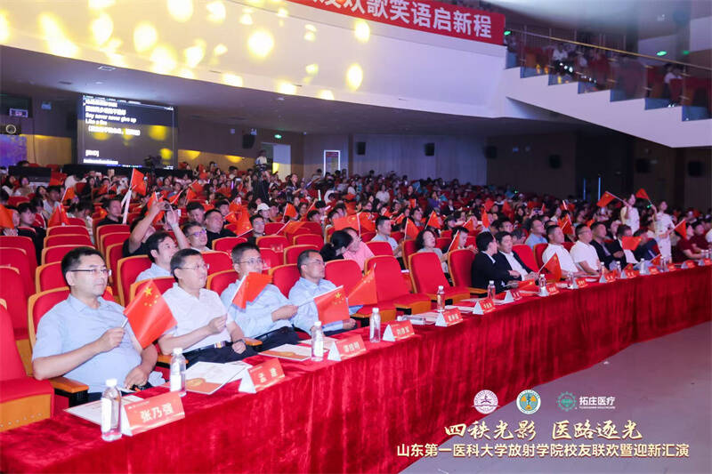 四秩影像,创新领航。9月26日,放射学院迎来成立40周年的重要时刻,校友联欢会暨迎新汇演在泰安校区热烈开启。校(院)党委委员、副校(院)长贾海宁出席活动,学院党委书记许锐、校友会会长韩爱国分别致辞。附属医院代表、校(院)各职能部门领导、放射学院老领导、来自天南海北的校友以及全院师生代表等1000+人共同观看演出。