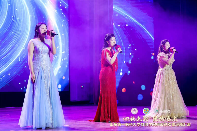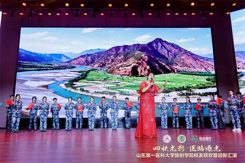 五湖四海,影像定格声声真挚牵挂;此时此刻,旋律飞扬句句岁月深情。荧屏上,来自天南海北的祝福串联起深厚情谊;舞台中,校友的深情献唱回荡着青春记忆。声画交织,共同汇成一场跨越山海的温暖致敬,展现了放射学院强大的凝聚力。