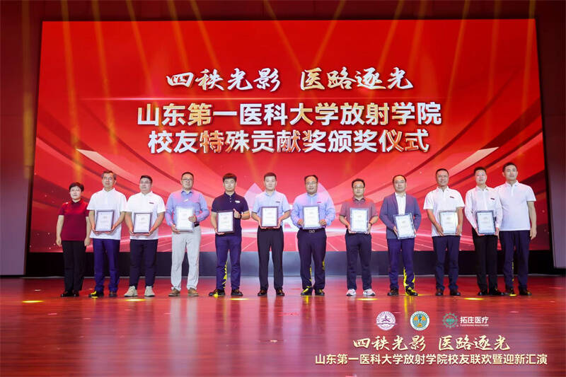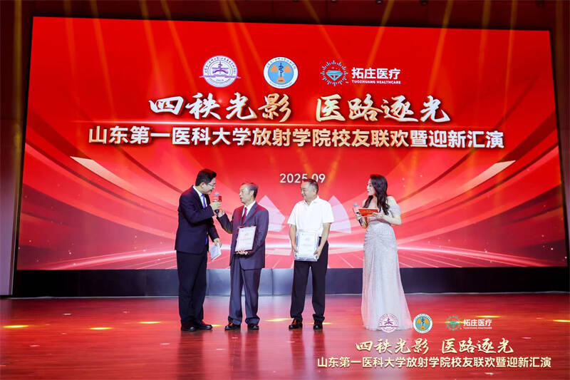 在庄重而温馨的表彰环节,学院向多年来辛勤耕耘、无私奉献的优秀教师代表,向各领域取得卓越成就、心系母校发展的杰出校友致以崇高敬意,感谢他们为学院铸就辉煌荣光。在采访中,教师代表回顾着学院一路走来的风雨历程与难忘故事;校友代表分享着自己在放射学院的学习经历和成长故事。在故事中,大家感受到了学院的温暖与力量,更加坚定了为学院发展贡献力量的决心。