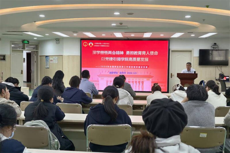 为深入学习贯彻2026年全国两会精神,准确把握教育事业发展的新部署新要求,3月23日,放射学院学生第三党支部在放射楼二楼报告厅举办“深学细悟两会精神,勇担教育育人使命”专题学习活动。学院党委副书记赵传华担任主讲,支部党员、部分辅导员及大一学生代表参加会议。