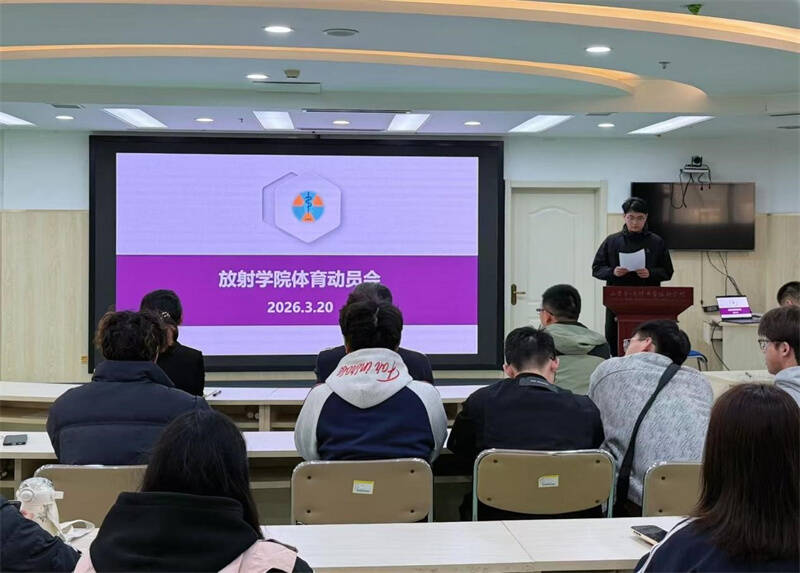 首先,学院领导深刻阐述了此次动员会的重要意义,带领大家认真学习了“放射学院2026年春季学生体质健康提升训练方案”,学生会主席宣读了“趁春风正好,我们一起去跑步 —体育锻炼倡议书”。会议指出,春天是生机勃勃的季节,也是锻炼身体、增强体质的最佳时机。全院上下要紧紧抓住这一大好时光,引导学生走出宿舍、走向操场,让青春的汗水在春风中挥洒。会议强调,身体是革命的本钱,更是未来投身放射医疗事业的基石。全院师生要以实际行动诠释“无体育、不放射”的精神内涵,将体育锻炼内化为一种生活方式,外化为一种自觉行动,共同营造积极向上、充满活力的校园体育文化氛围。